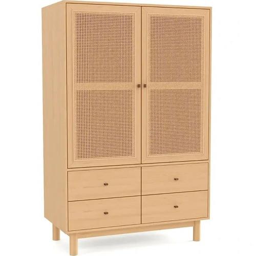 کمد چوبی لباس کشودار با طراحی درب حصیری و دکوراتیو