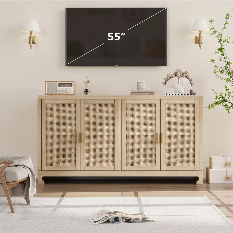 کنسول چوبی چهار در حصیری مناسب دکور مدرن و بوهویی