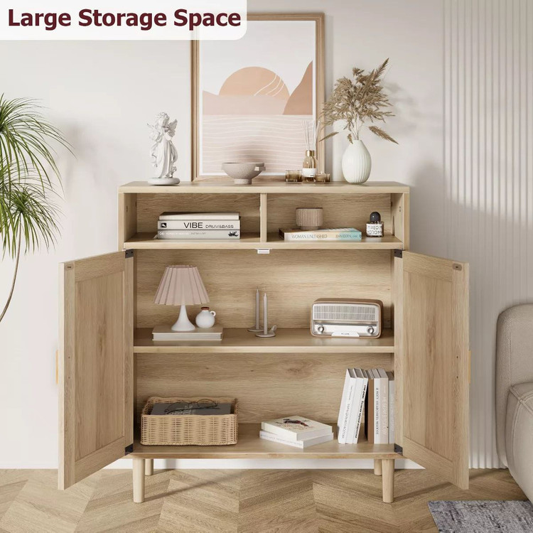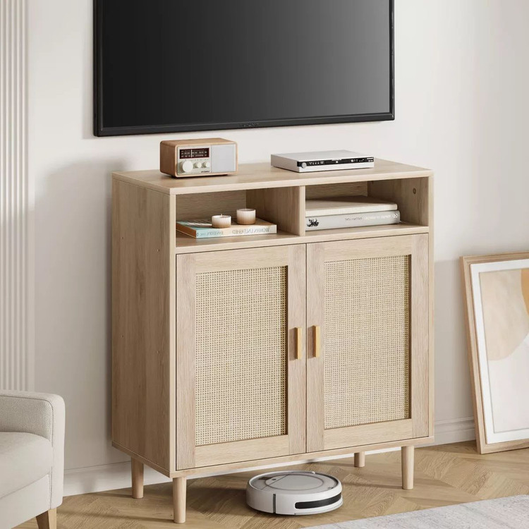 جاکفشی یا کنسول دو در حصیری – طراحی مینیمال از چوب روس و راش | مناسب ورودی و اتاق خواب