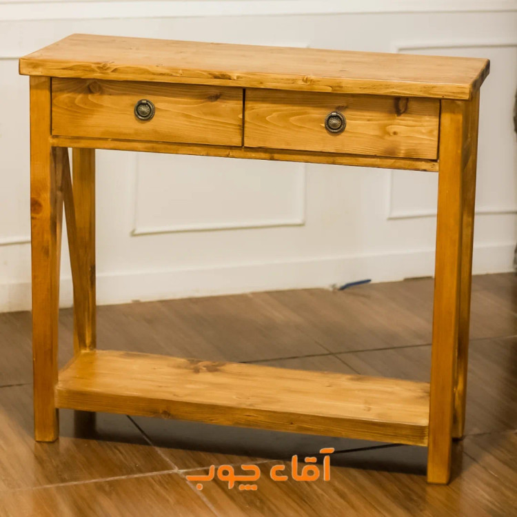 کنسول چوبی مینیمال با ۲ کشو | طراحی ساده، کاربردی و ماندگار